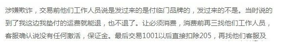 客服催著交易,交易前再三確認(rèn)沒有任何激活費(fèi)、保證金!交易1001到賬796.49,扣除將近205元。