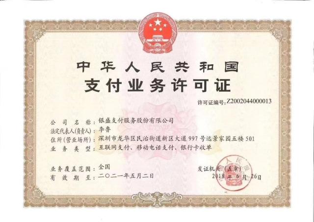 文章導讀:銀盛支付服務股份有限公司(以下簡稱“銀盛支付”)是銀盛金融集團旗下全資子公司,總部位于深圳龍華,成立于2009年7月,總注冊資本為1.4億元,是經中國人民銀行批準、從事支付業務的國家高新技術企業,是廣東省商務廳認定的廣東省電子商務示范企業和中國支付清算協會理事單位。2011年5月銀盛支付獲得中國人民銀行頒發的全國業務范圍的《支付業務許可證》,是首批獲得支付牌照的27家機構之一,